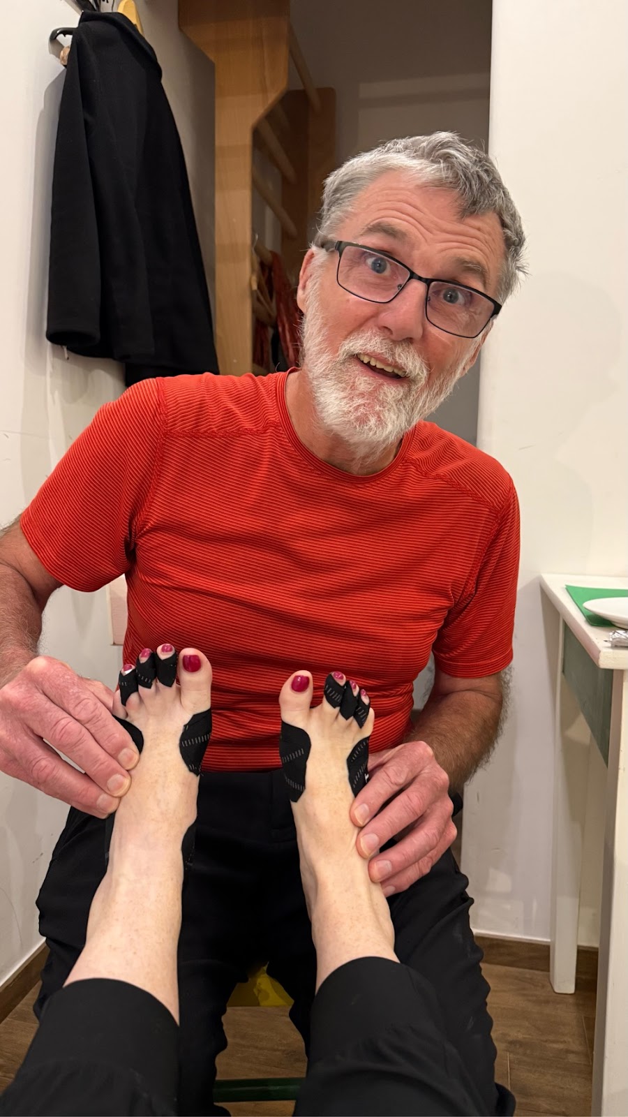 Sally’s feet all taped up and ready to go.