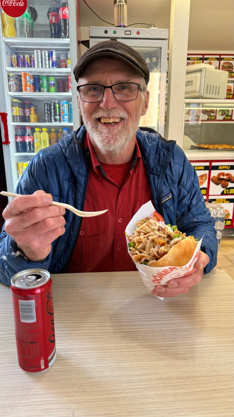 We decided the Donar Kebab was so good we should get one for lunch tomorrow. We stopped in and had him make us one with the bread separate and the internal fixings in a plastic take away box.
