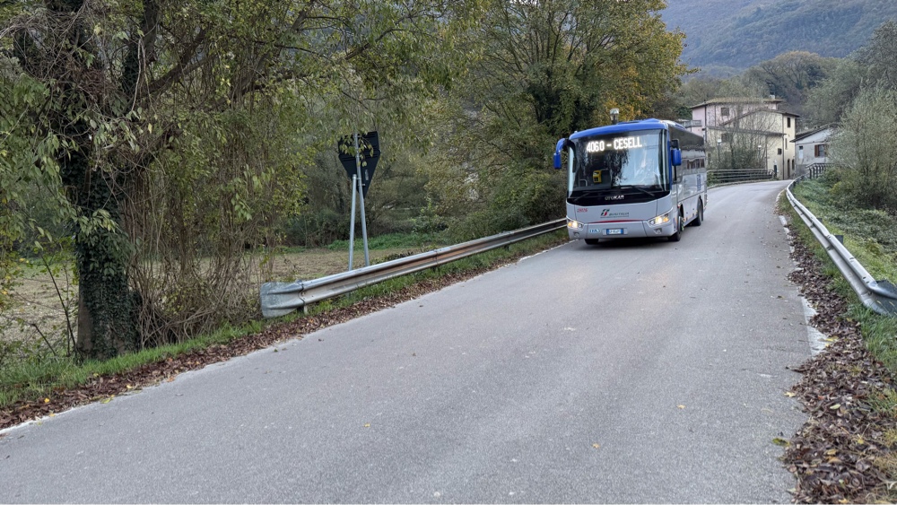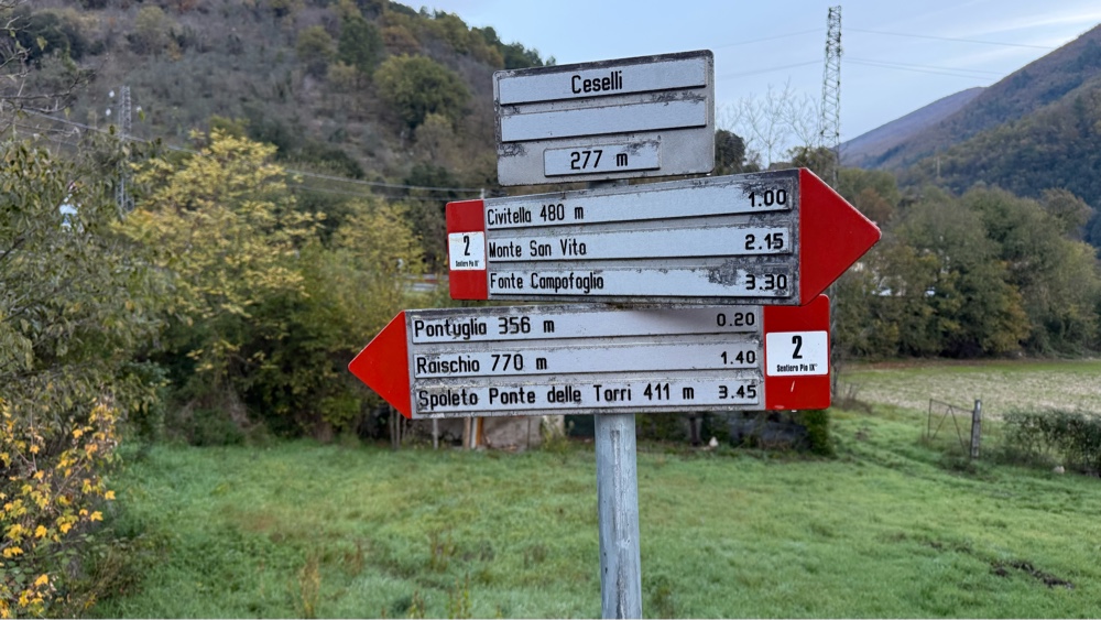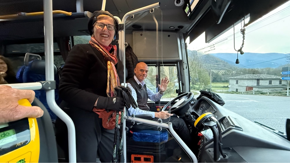 On schedule the driver dropped us at Ceselli, a town about half the size of Vader, WA. He willingly posed for a photo as we exited the bus. We could have ridden it another 200 yards up our side road to walk on, but we chose to get off at the crossroads.