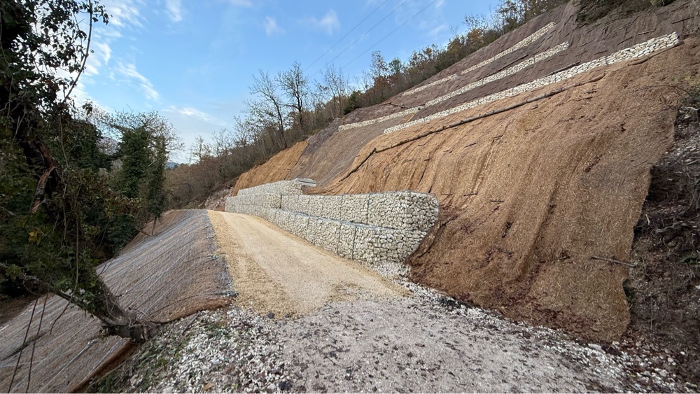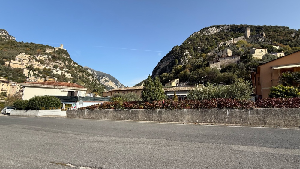 We stopped in the town of Precetto to eat our Donar Kebab lunch on a park bench. This town is perched right where the narrow valley comes out of the mountains and spills onto a wider river bottom. To control trade up the narrow valley up river of the town they built ramparts and forts on the steep sides of the valley. The one on the north side is now supported by steel I beam columns to keep its sides from crumbling onto the houses below.