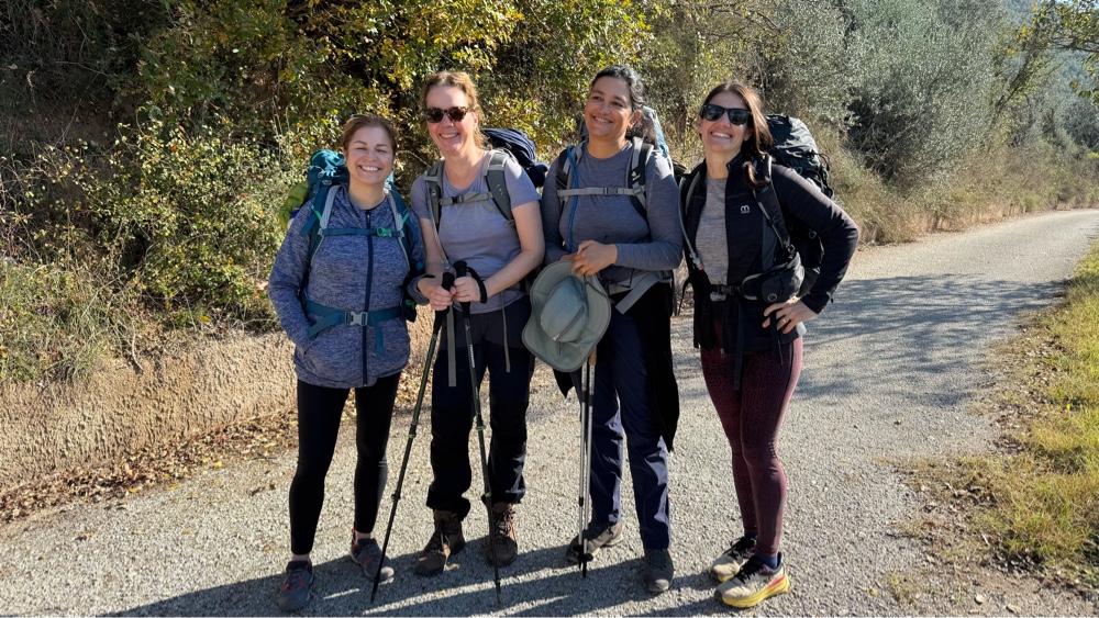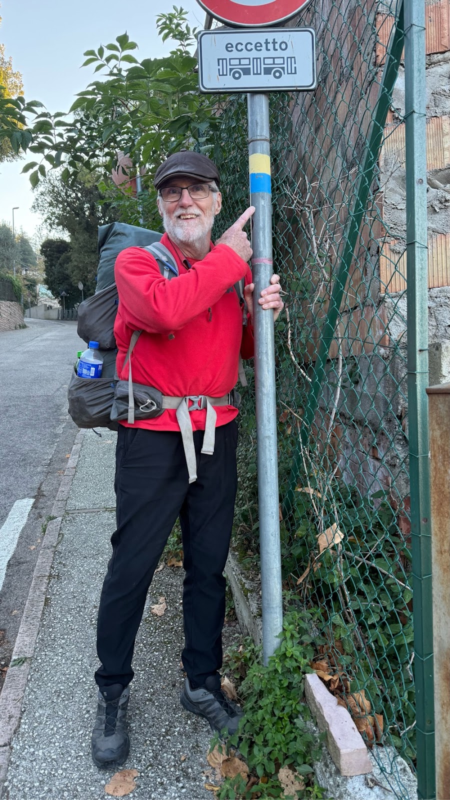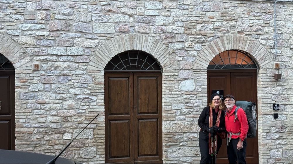 We were out the door about 7:45, stopping to take a photo of us before our apartment door. It is sad to be leaving Assisi, but not really. We got to see everything we wanted and are looking forward to the walk and the towns ahead.