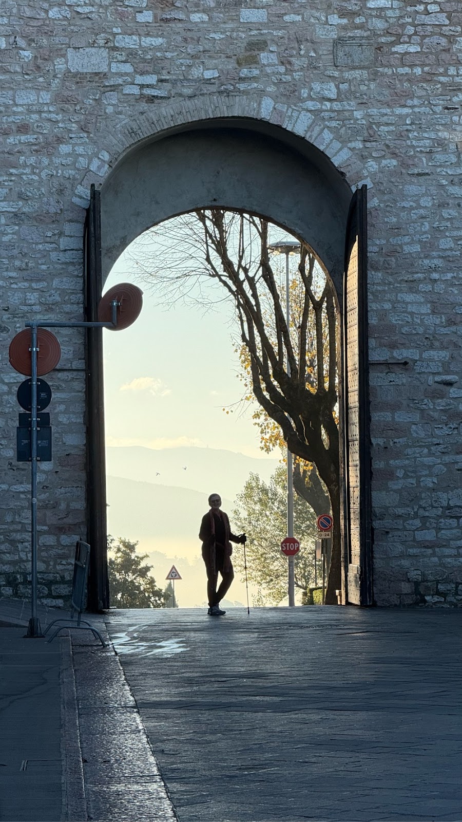 We stopped at the wall enclosing the city for a final photo, then through the arch and on our way.