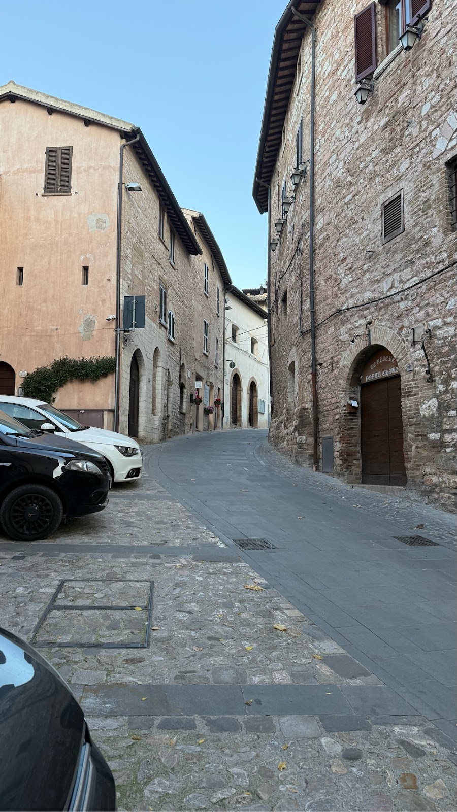 Another hour of walking and we entered our destination town, Spello. Our room was at the opposite end of this ridge top town. We walked down the narrow main street of this medieval town original built by the Roman’s in the 1st century.