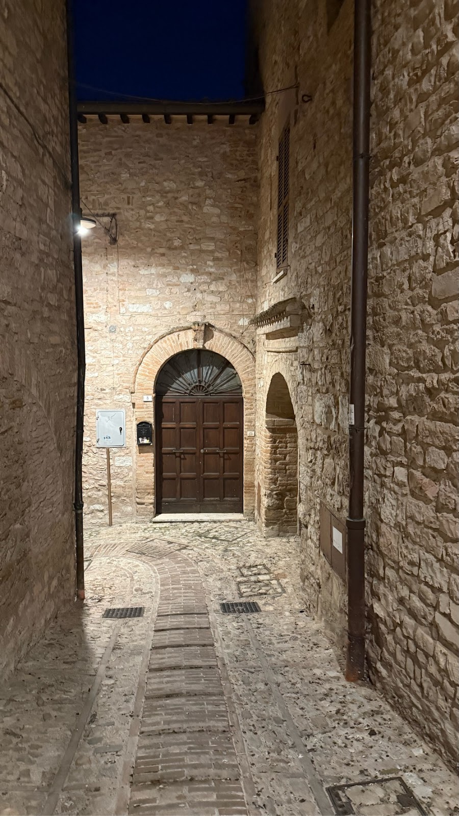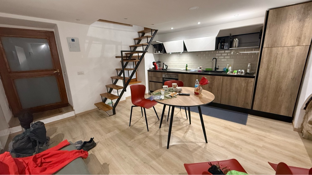 We wandered down another 100 yards to Maddalena Street where we turned right and continued down about 30 yards and two bends to find our place for the night. The door was open and the cleaner was hard at work so we returned to the main drag to wait the 10 minutes until she was done. Sally walked back up to the grocery/deli to get a Coke for the morning and then we entered our place for the night.