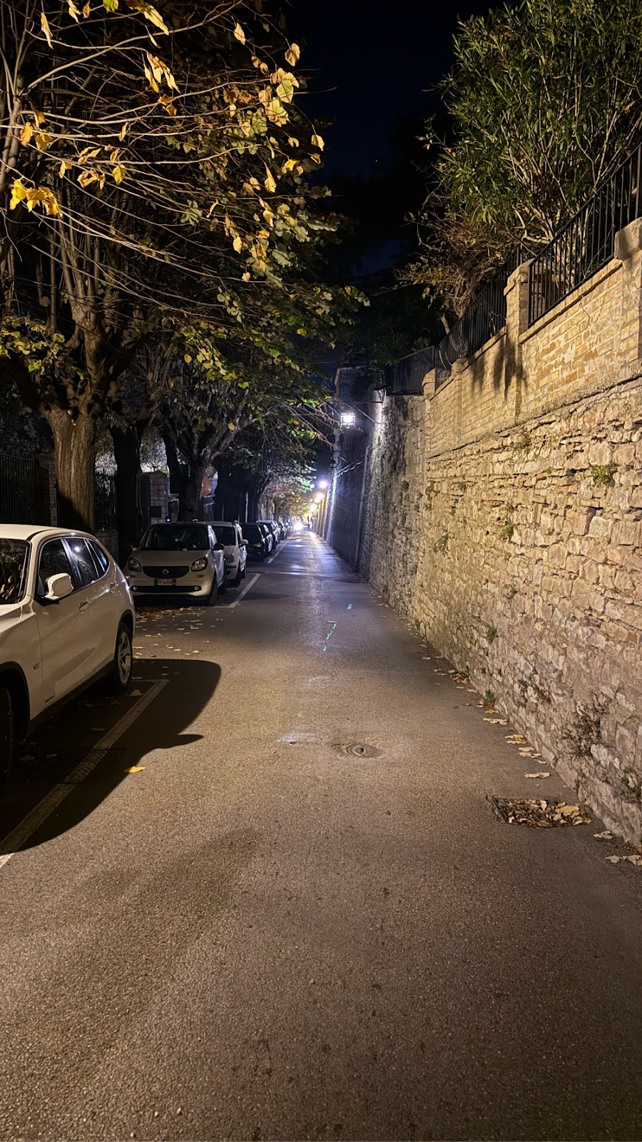 Road and walls at night