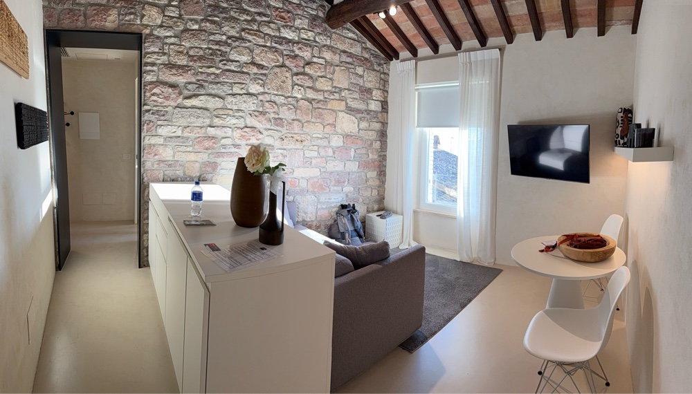 Wow!  What a beautiful place. Tastefully designed and furnished with a view out over the valley below, it was perfect. A great place to spend the next three nights as we explore Assisi and recover from jet lag.