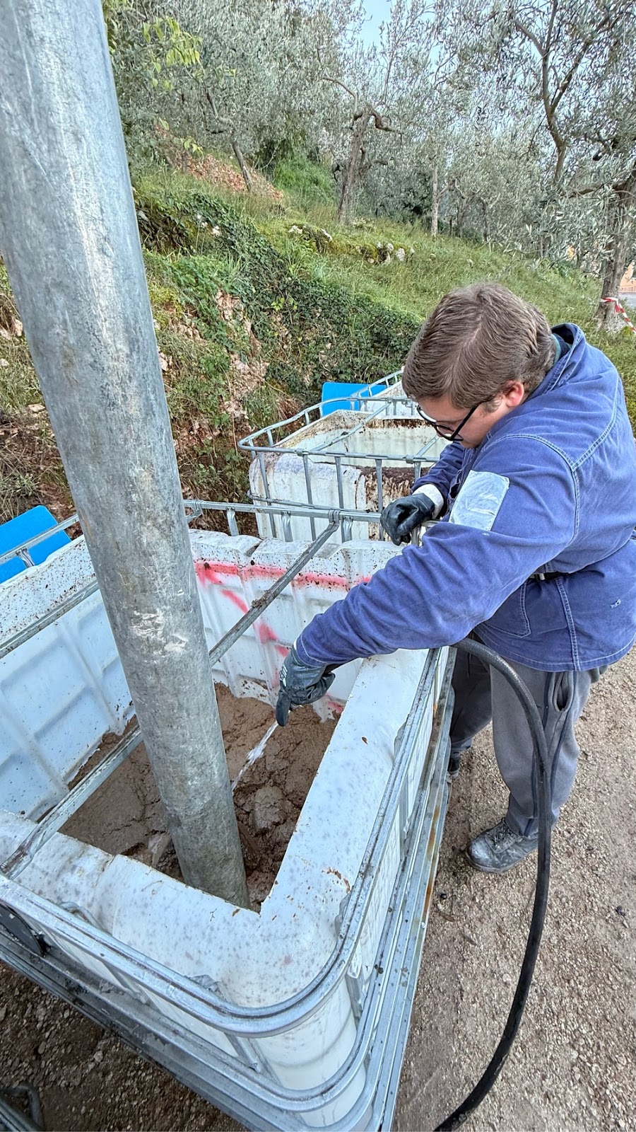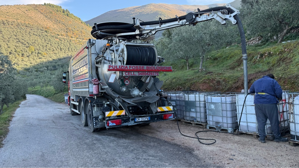 A mile further from Trevi we heard the noise of a big machine. It was reminiscent of a septic tank pump truck vacuuming poop. We switchbacked up the steep road toward it, the sound getting louder until it was deafening.