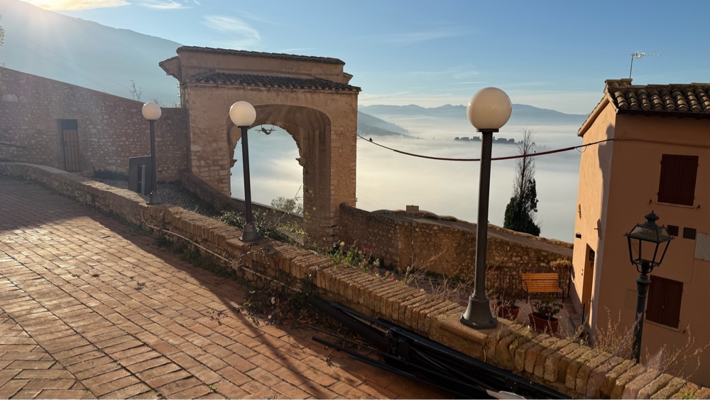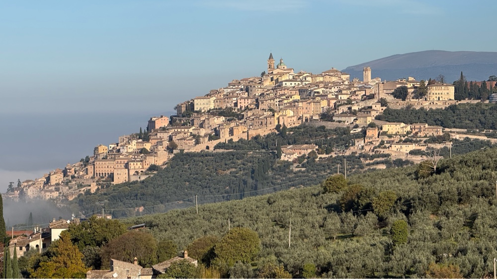 We are still juggling our walking, stays, rain schedules. Awake this morning at 5:30, checking weather, distances and elevation changes on our apps, still working toward optimization of our journey. It is fun to have the complete freedom to alter plans to adapt to conditioning, conditions and attitudes. For certain, today we are walking from here, Trevi, to Poreta, about 8 or 9 miles away via the route of the “Way”.