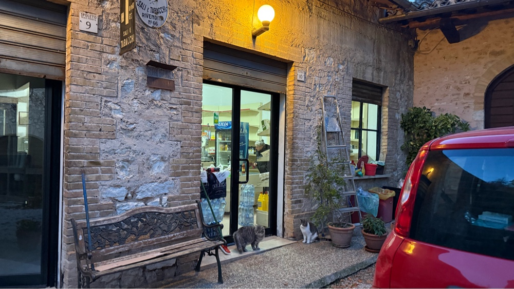 After a time we ventured out to Rosa’s store again, but it was locked with no sign of anyone. We walked down the road and found a farm to table compound where a Range Rover had just pulled in. We followed the signs to the restaurant and entered a building, yelled Buongoirno. The startled driver of the Range Rover appeared, surprised to find us in his house. He kindly guided us to his restaurant, speaking broken English and explaining the area and that they didn’t open until 7:30pm.