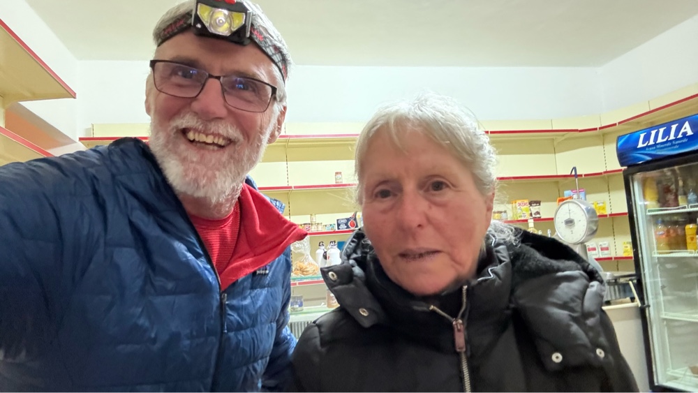 Halfway up I got a call from an Italian phone number. It was the place we were staying in tonight at Poreta. He spoke no English, I no Italian. I said “WhatsApp” and he said okay. I tried to send him a written message that I could have my phone convert to Italian, but it came back. He doesn’t use WhatsApp. We decided he probably wants to know what time we will arrive. I had the translation app tell me how to say “We will arrive between one and three,”. I called him back and recited my lines. We had guessed correctly. “Buono. Buono. Ciao.” And he hung up. Onward.