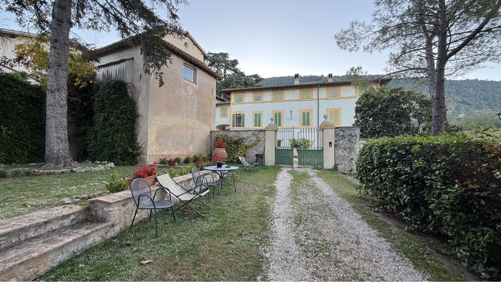 We began a decent to our destination, Poreta, undulating downward past a castle/fancy hotel and through the ever present olive groves. On the Spoleto valley floor we found Poreta, a hamlet made up of about five or six buildings.