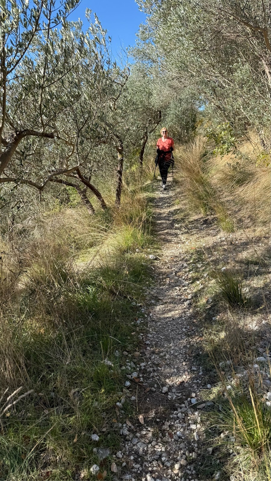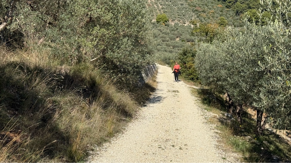 Absolutely gorgeous sunny morning. It was a day of high traverses with steep climbs and descents. The air felt very cold, which was a relief while ascending roads through the olive groves that seemed too steep for a car or truck to utilize.