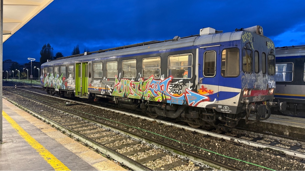 Today was a travel as well as a walking day. We had to catch a 6:08am train from Marmore to Rieti. You might ask, “I thought you were walking across Italy?” And I would answer, “Yes, we are, but a few of the stages are too long and with no place to stay if we did them because we are here in the off season, the very off season and many places are closed.