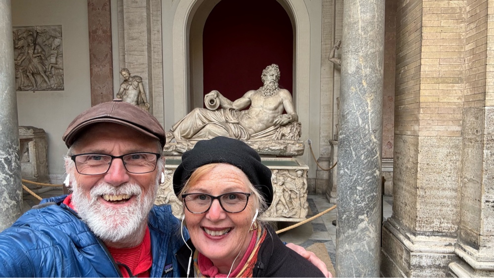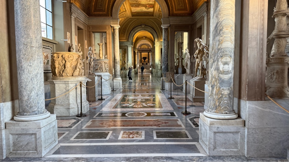 We enjoyed the relaxed mood of the waters at Trevi and then started back to our lodgings. I used Apple Maps to plot our course home, but I think I didn’t select a walking route and instead plotted a driving route. Predictable, it was much longer and convoluted as it negotiated one way streets. About halfway along the route we were remarking at how long it was. The base of our triangle looked like a swollen, pregnant belly, adding quite a bit of distance. I replotted our route, selecting a walking route. The belly shrank in size, but the distance was still farther than expected. What should have been about 0.8 miles from Trevi to our room was still 0.9 miles away, even after walking for the previous 20 minutes. I scrutinized the route and found it was indeed the shortest route home. Where had the previous iteration taken us?