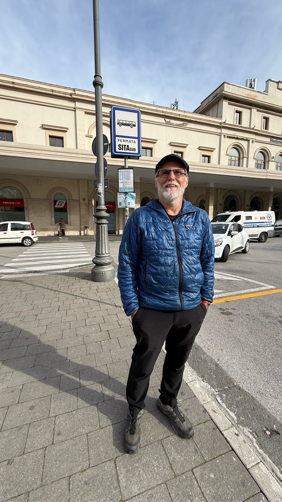 About noon we make our way to the bus stop. Not seeing a FlixBus parked there we move 50 yards to a waterfront bench, review our financial record keeping for the trip for ten minutes and then back to the bus stop where a Flexbus is parked and waiting. After a ten minutes wait the driver scans the tickets on our phone and we board. We ask the driver if she can unlock the bathroom and she angrily snaps at us in broken Italian/English to wait until we are underway. We don’t dare to ask why. About 30 minutes into the trip we try to use the restroom again, but the door won’t open. Sally walks to the front of the bus to ask if she will unlock the door. The angry woman behind the wheel spews some venom, yet the door still won’t budge. Another passenger, a guy in his 20’s tries the door with no success. He yells at the driver, in Italian, that the door won’t open. I decide maybe the door is stuck, not locked, brace myself and yank quite vigorously. It doesn’t break, but it doesn’t open either. I reposition and try again, this time with little effort, it opens. Is she just messing with us?