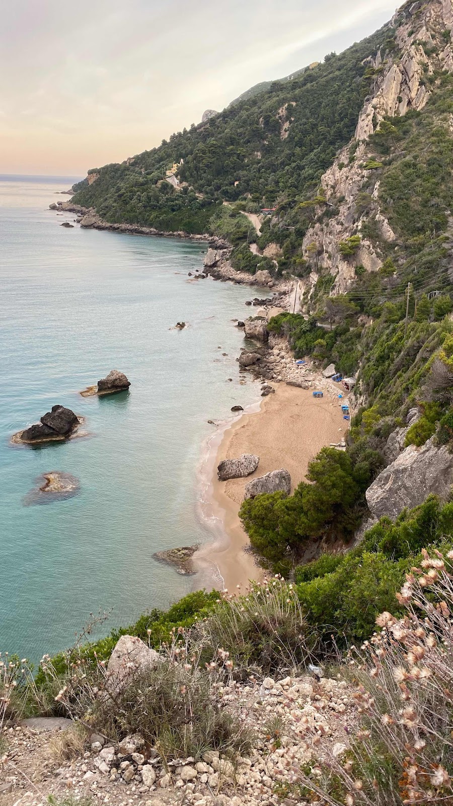 In its desire to be a scenic trail, it drops down to what is considered the most beautiful little beach on the island, one that Larry Durrell spoke of. The way the trail is routed, I could skip this part. It would save me about 2.5 miles and 1000’ of climbing.